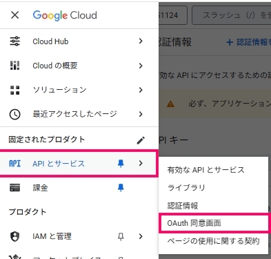 GCPコンソールで 「API とサービス」 > 「OAuth 同意画面」 を開きます。