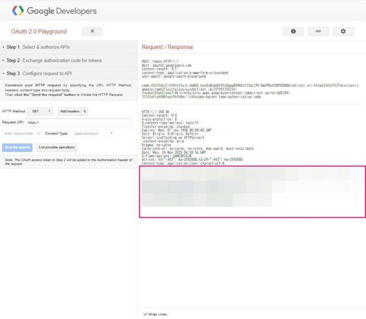 URLを開くとOAuth 2.0 Playgroundに戻ってきます。
